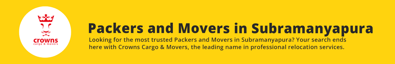 Looking for the most trusted Packers and Movers in Subramanyapura? Your search ends here with Crowns Cargo & Movers, the leading name in professional relocation services. With years of experience and a strong presence as one of the best Packers and Movers in Bangalore, we offer top-tier moving solutions tailored to your needs. Whether it’s your home, office, or commercial space, we ensure a hassle-free and smooth relocation experience backed by a team of trained professionals and advanced logistics.